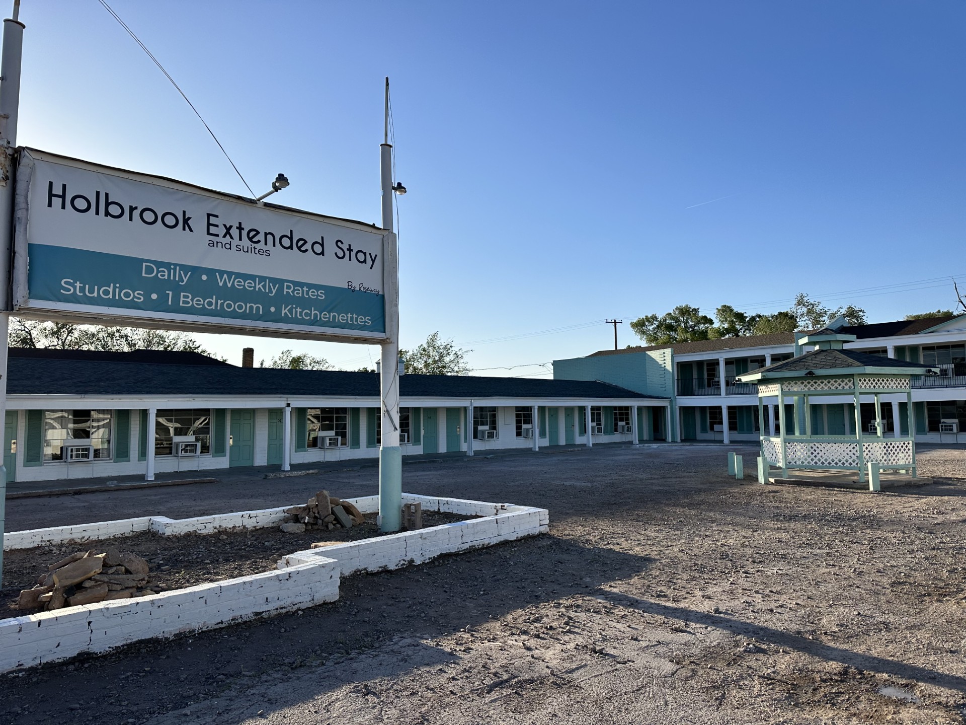 Holbrook Extended Stay and Suites is located on Old Route 66 in Holbrook, AZ. The motel has changed names multiple times over the decades but still has its same charm. Recently, the motel has gone through a complete renovation and added kitchenettes to each room. Holbrook Extended Stay and Suites is centrally located between the Painted Desert, Petrified Forest, Meteor Crater and much more. Located right off the I40 in old town Holbrook. Book a room to come visit and see all the beauty of the area!